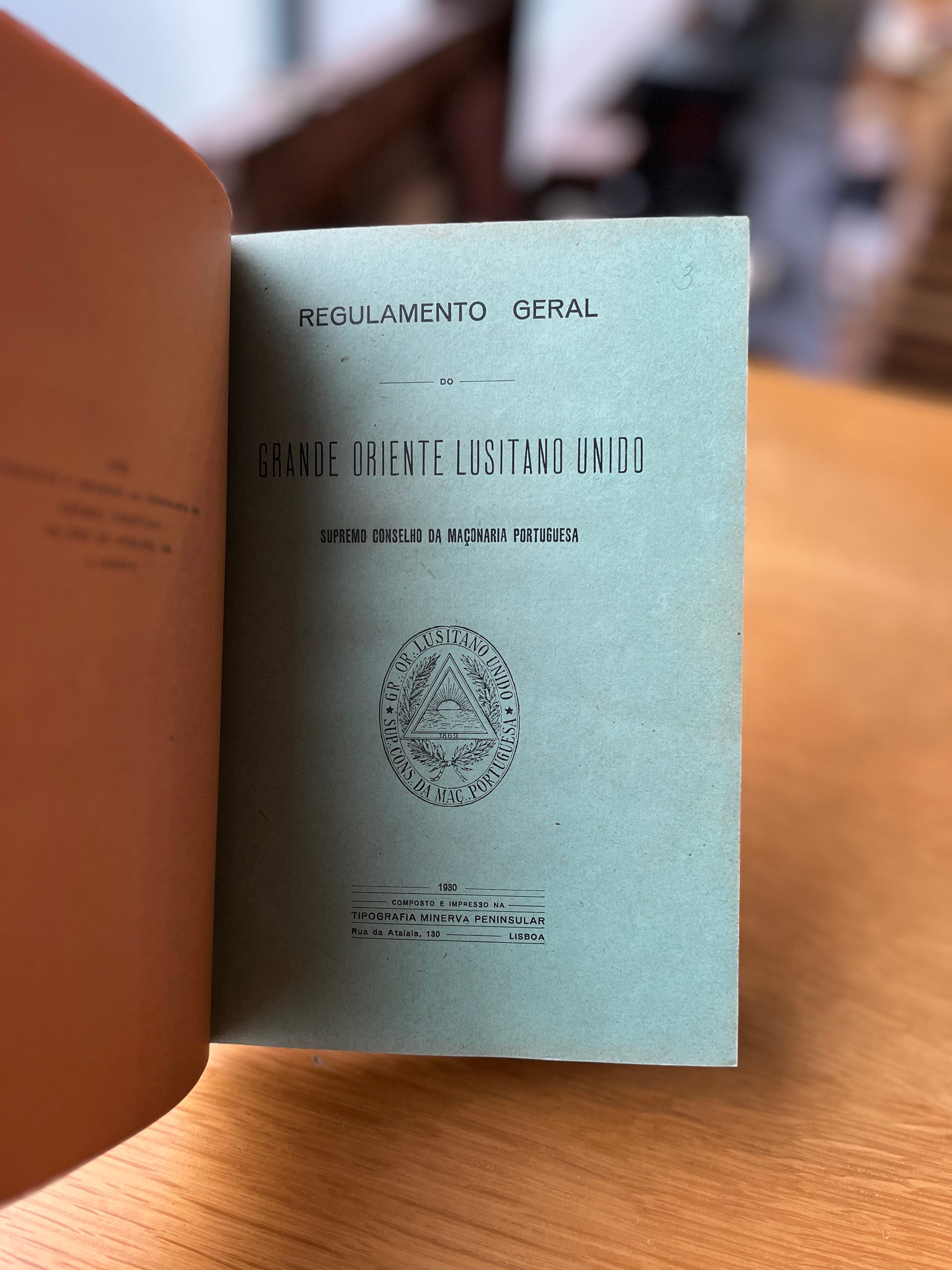 - Regulamento Geral do Grande Oriente Lusitano Unido. Lisboa, Tipografia Minerva Peninsular, 1930. Com o selo do Supremo Conselho e o triângulo com o sol nascente. 143 pág.s.