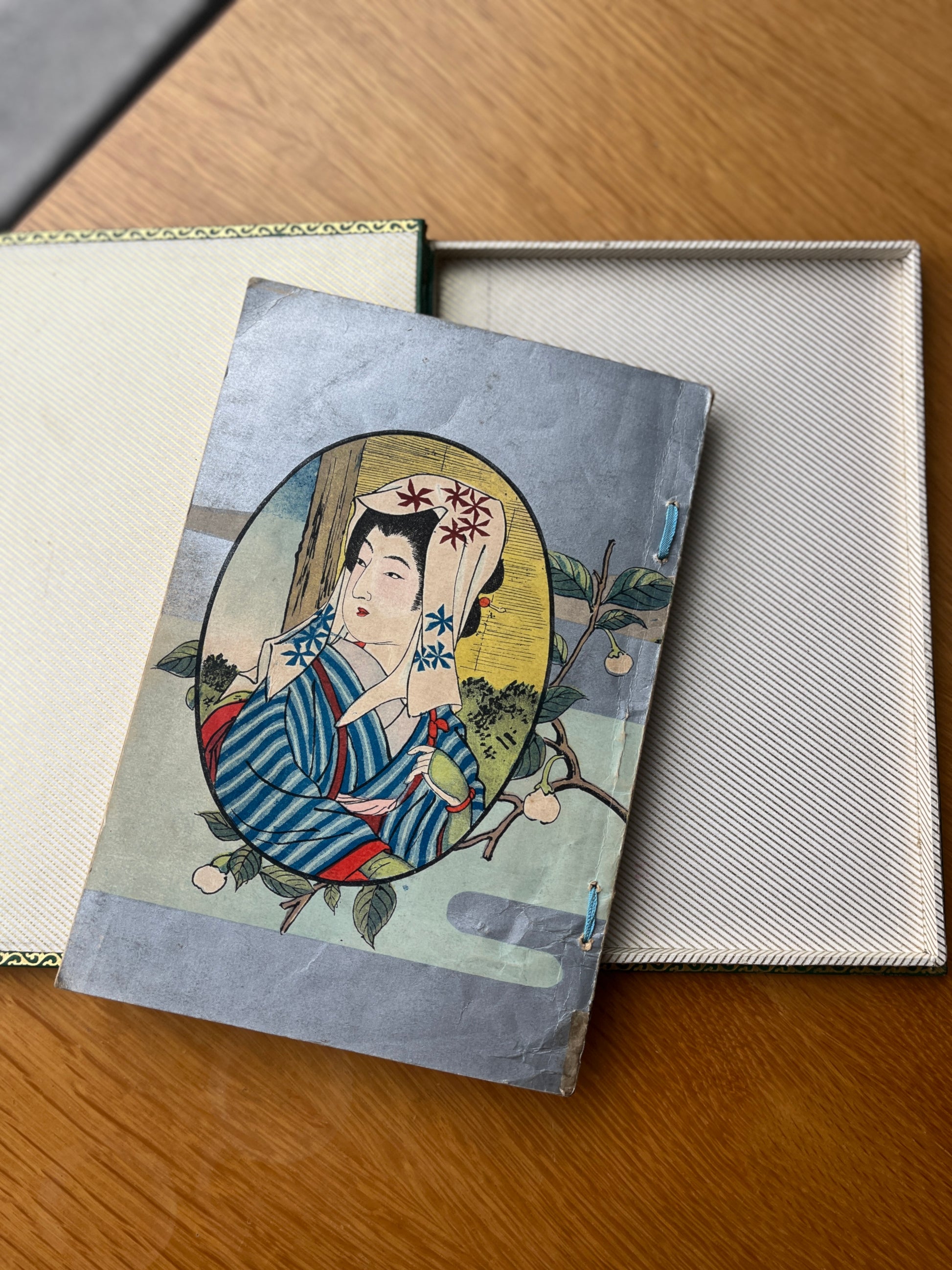 B. de 44 páginas ( com falta do frontispício ). Capas de brochura com pequenos sinais de manuseamento, como é habitual encontrar nesta obra, miolo em muito bom estado em papel japonês e impresso à maneira clássica japoneza, com as folhas duplas impressas numa só face do papel, as folhas intactas ( excepto a ultima folha com pequena falha de papel )