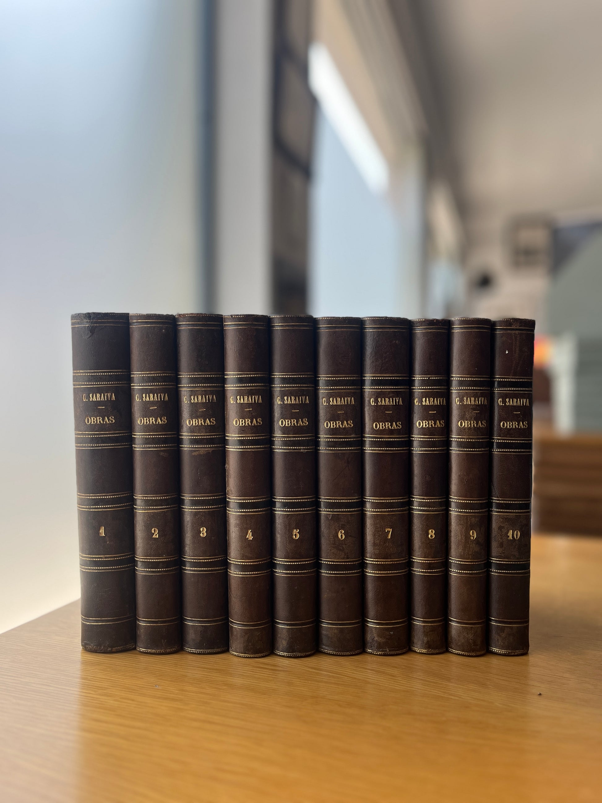Coleção completa em 10 volumes, neste caso, encadernada com lombada em pele; 21 cm. Bom estado.