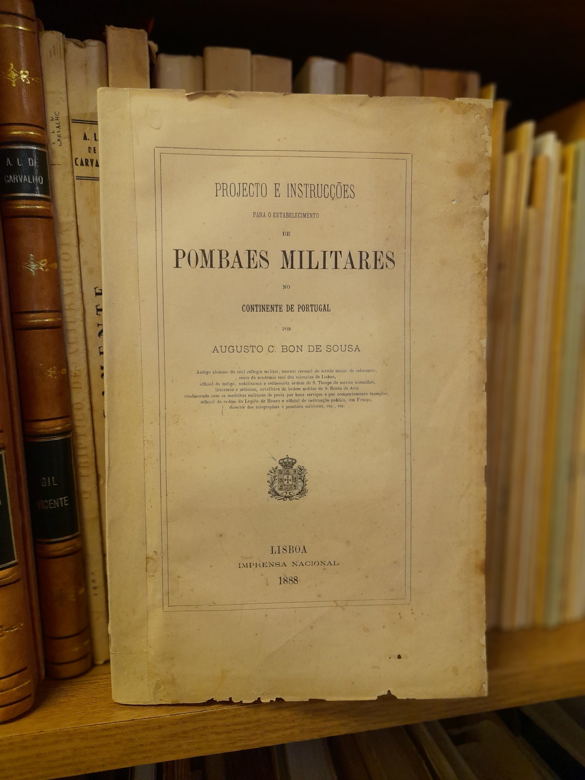 "(...) O instincto e a extraordinaria tenacidade em procurar os pombaes onde nasceram ou estão habituados, e o vigor desenvolvido pelo methodico apuramento das raças dos pombos-correios, dão a estas aves força e velocidade de vôo apenas acreditavel. São bem conhecidas as vantagens que d'ellas se obteve nos cinco e meio angustiosos meses do memoravel cerco de Paris (1870-1871), e desde então os governos têem cuidado na instituição de pombaes militares regularmente organisados. O estabelecimento dos pombaes militares é util no tempo da paz, não só para a necessaria e indiscutivel preparação da guerra, mas também póde substituir o telegrapho em casos excepcionaes. (...)" In- pág.3